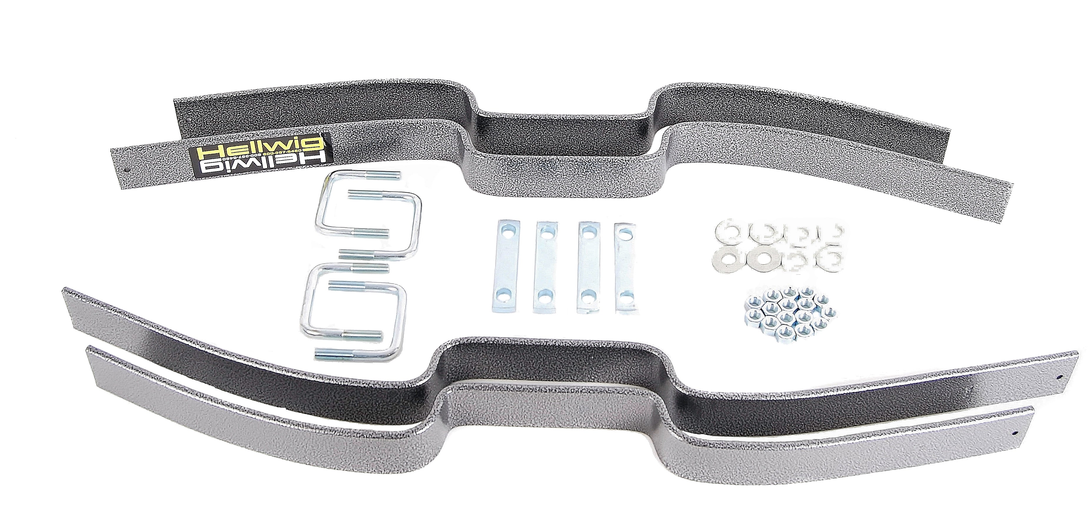 Add assistance to your factory overload springs with Hellwig's Contact Helper Springs. Get help sooner with the contact helper, as the vehicle is loaded the Hellwig contact helper spring connects with the factory contact pads sooner providing better support and less sag for heavy loads. When in contact, the extra Hellwig leaves stiffen the overload springs decreasing the sag of the vehicle in a loaded condition. Hellwig contact overload assist springs mount directly to the factory contact springs for easy install and better load support to increase the truck's level-load carrying capacity. In normal use, they leave performance unchanged.